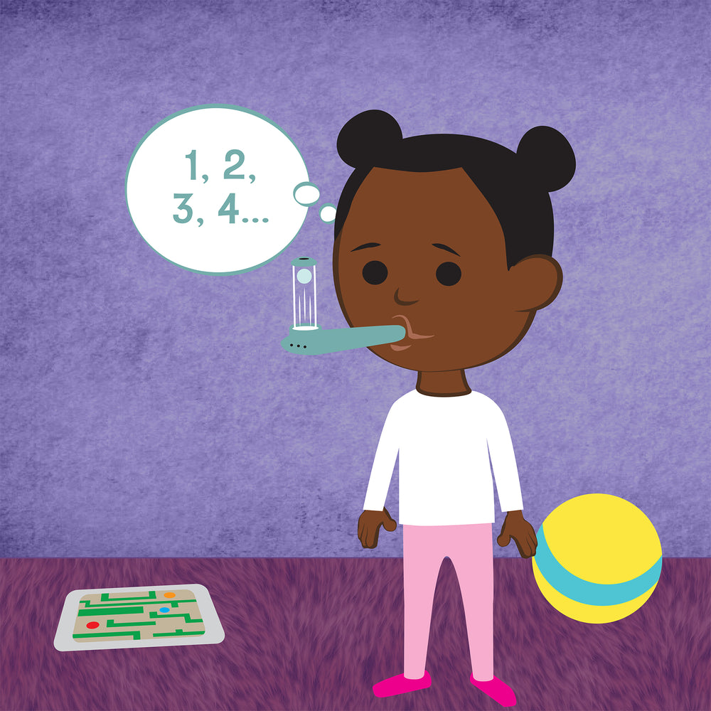 When the correct level of air pressure is blown into the breathing tube, the ball will rise in the indicator. It will remain airborne for as long as you exhale, allowing for visual concentration on the elevated ball.